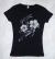 AuliiHaupiaのハイビスカス柄Tシャツ、サイズ:M、L、XL、色:黒、白。胸部分と背面右肩甲骨部分に同じハイビスカス柄のパープル色のプリントがしてあります。 絵柄の色が、シルバー色がラインナップしました。定価3240円を2970円。